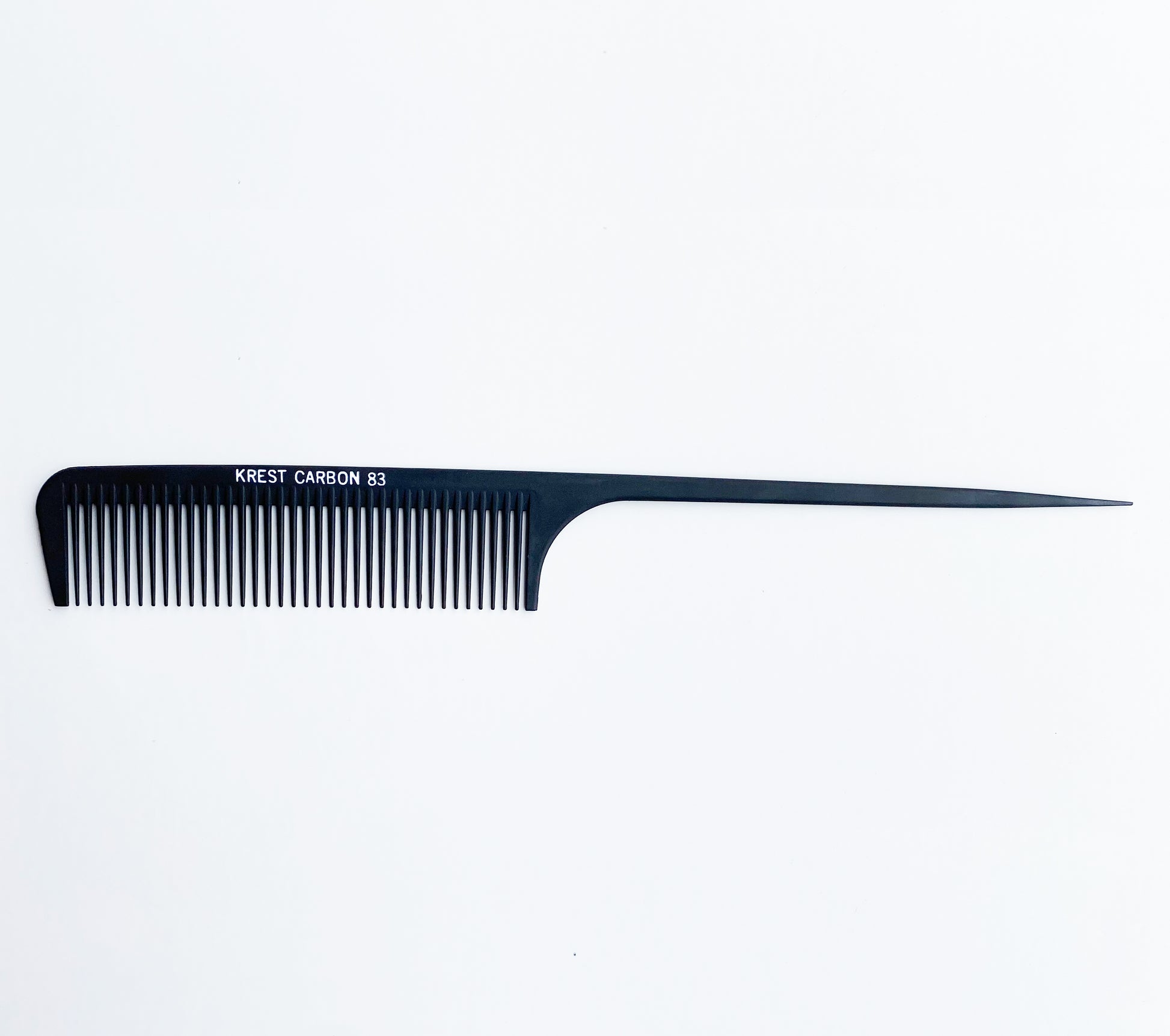 Krest Carbon Heat-Resistant 10" Thin, Tall Coarse Tooth Rattail Comb